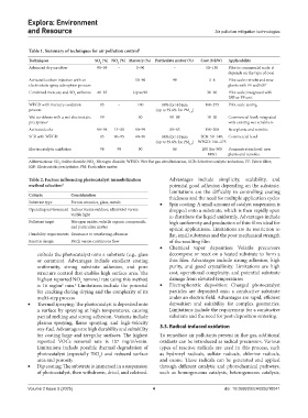 Table 2. Factors influencing photocatalyst immobilization Advantages include simplicity, scalability, and