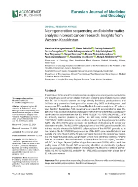 Citation: Aitmagambetova M, to sequence 113 candidate genes, followed by bioinformatics analysis, on BC patients