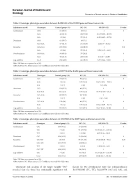 Table 3. Genotype‑phenotype association between rs2229774 of the RARG gene and breast cancer risk