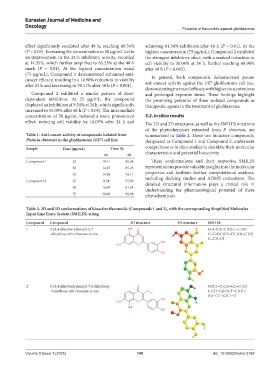 effect, reducing cell viability by 16.09% after 24 h and The 2D and 3D structures, as well as the SMILES notations