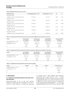 Table 4. Comparison of PTH indices between the two groups at different post‑operative time points