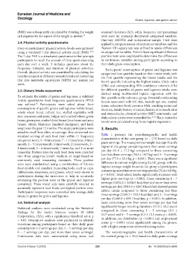 frequency, intensity, and duration of physical activities. Participants’ consumption of grains and legumes was