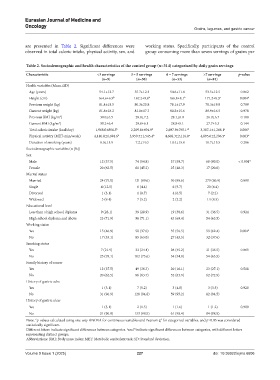 are presented in Table 2. Significant differences were working status. Specifically, participants of the control