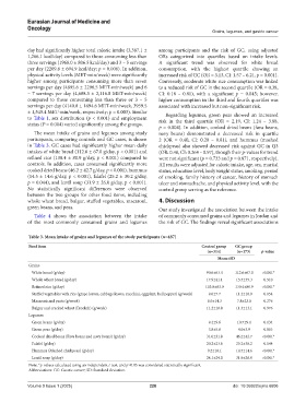 day had significantly higher total caloric intake (3,387.1 ± among participants and the risk of GC, using adjusted