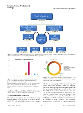 Figure 3. Distribution of distinct variants of unknown significance in BRCA1 and BRCA2 from the Middle East and North Africa region,