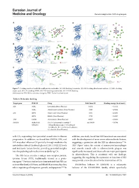 Figure 7. Docking results of available small protein molecules. (A) FES docking Lovastatin. (B) FES docking alendronate sodium. (C) LPL docking