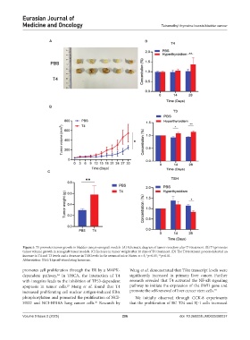 Figure 5. T4 promotes tumor growth in bladder cancer xenograft models. (A) Schematic diagram of tumor resection after T4 treatment. (B) T4 promotes