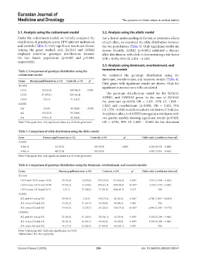 Table 4. Comparison of genotype distribution using the dominant, overdominant, and recessive models