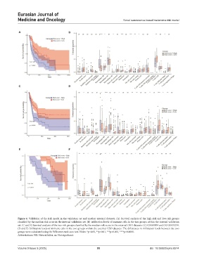 Figure 4. Validation of the risk model in the validation set and another external datasets. (A) Survival analysis of the high-risk and low-risk groups