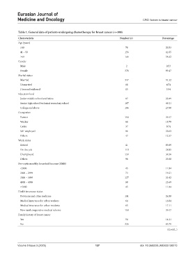 Table 1. General data of patients undergoing chemotherapy for breast cancer (n=380)