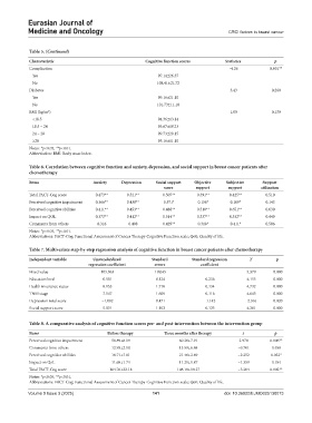Table 6. Correlation between cognitive function and anxiety, depression, and social support in breast cancer patients after