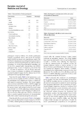 Table 1. Characteristics of study participants Table 2. Participants’ communication skills scale scores