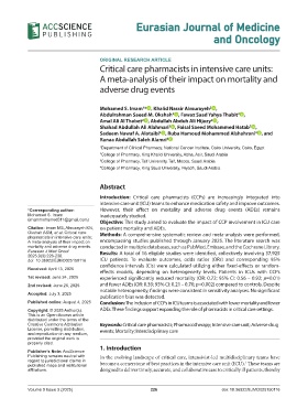 doi: 10.36922/EJMO025150116 ICU patients. To evaluate outcomes, odds ratios (ORs) and corresponding 95%