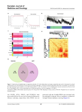 Figure 3. Construction of weighted gene co-expression networks. (A) Scale independence and mean connectivity were used to determine the optimal