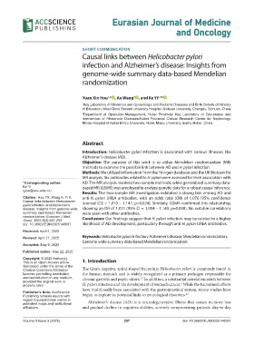 Revised: April 27, 2025 Keywords: Helicobacter pylori; Infection; Alzheimer’s disease; Mendelian randomization;