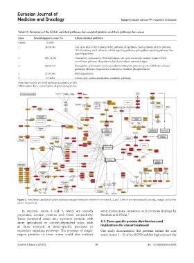 Table 11. Summary of the KEGG enriched pathways for essential proteins and their pathways for cancer