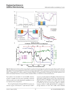 Figure 10. Representative hardness profile of various bimetallic structures fabricated through multi-material laser powder bed fusion (MM-LPBF) and