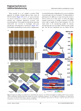 morphology and temperature distribution (Figure 15C). during horizontal layer deposition, SS316L powder melted