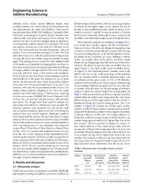 were run, and three states of the powder were examined. defects with an average of the percentage of the particles