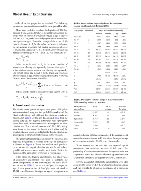 T x+1 = T − L , and e = l x (17) Table 2. Descriptive statistics of age at menopause data of
