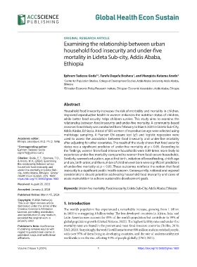 Accepted: January 2, 2024 Keywords: Under-five mortality; Food insecurity; Lideta Sub-City; Addis Ababa; Ethiopia