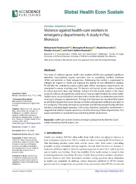 Fez, Morocco. Global Health Econ Keywords: Health-care workers; Violence; Emergency departments; Patients; Social