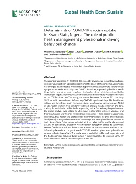 change. Global Health Econ level (86.9%) as major determinants of vaccine uptake among health-care workers in