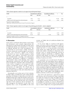 Table 4. Linear regression results of social support for predicting total fatigue a