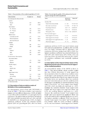 Table 1. Characteristics of the studied population (N=476) Table 2. Examining the quality of life and perceived social