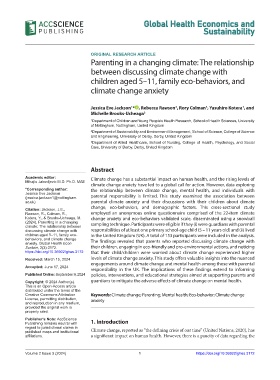 Creative Commons Attribution Keywords: Climate change; Parenting; Mental health; Eco-behavior; Climate change