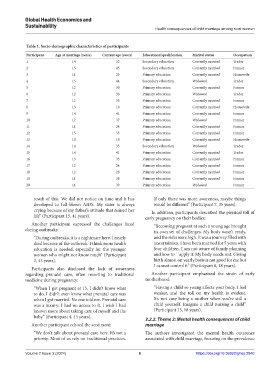 Participant Age at marriage (years) Current age (years) Educational qualification Marital status Occupation