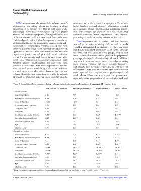 same-sex partners or for sexual violence among men with statistically significant correlation coefficients, although