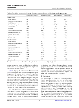 Table 10. Correlations between women’s dating violence perpetration and study variables disaggregated by partner type