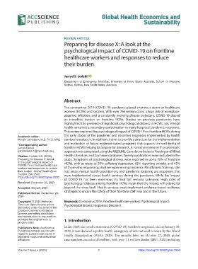 Copyright: © 2024 Author(s). Keywords: Coronavirus 2019; Frontline healthcare workers; Psychological impact;