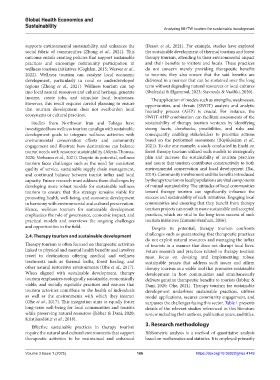 other natural restorative environments (Ohe et al., 2017). therapy tourism as a viable tool that promotes sustainable