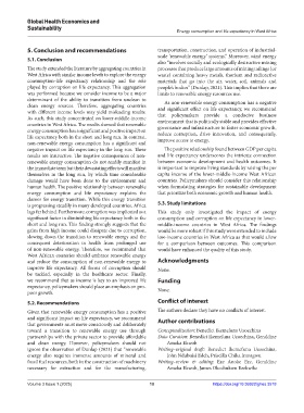 renewable energy consumption do not readily manifest in between economic development and health outcomes. It