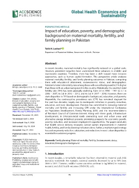 Copyright: © 2024 Author(s). Keywords: Family planning; Maternal mortality; Fertility; Socioeconomic status;