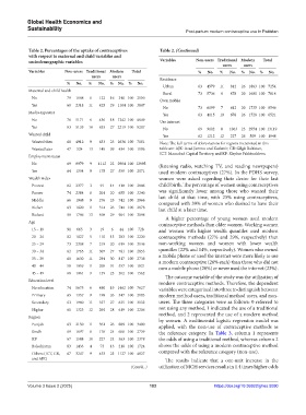 Table 2. Percentages of the uptake of contraceptives Table 2. (Continued)