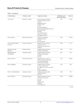 Genetic diseases Inheritance mode Diagnosis procedure Publishing year of Reference
