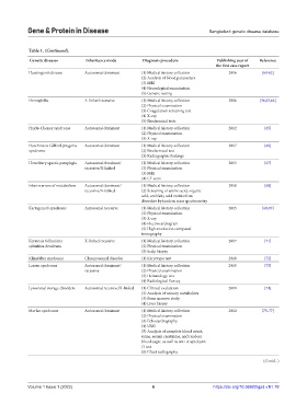 Genetic diseases Inheritance mode Diagnosis procedure Publishing year of Reference