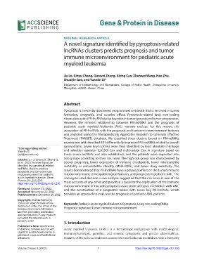 This is an Open Access article Keywords: Pediatric acute myeloid leukemia; Pyroptosis; Long non-coding RNAs;