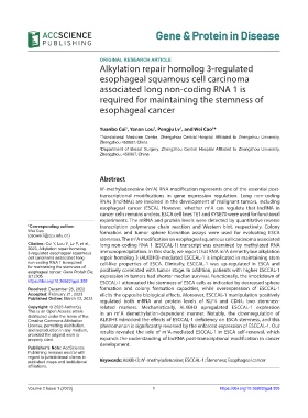 published maps and institutional Keywords: ALKBH3; N -methyladenosine; ESCCAL-1; Stemness; Esophageal cancer