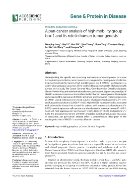 role in human tumorigenesis. Gene Keywords: High mobility group box 1; Cancer; Survival; Prognosis