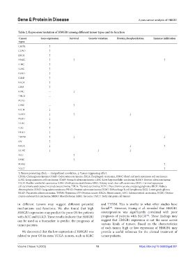 Table 2. Expression/mutation of HMGB1 among different tumor types and its function