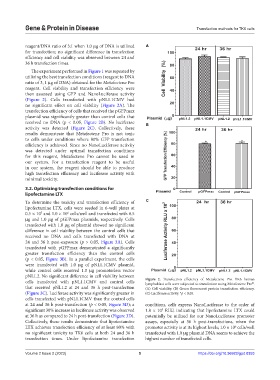 at 24 and 36 h post-transfection (p < 0.05, Figure 3D); a conditions, cells express NanoLuciferase to the order of