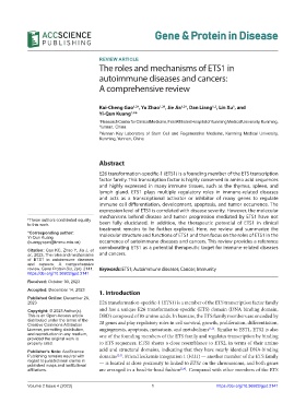 review. Gene Protein Dis, 2(4): 2141. Keywords: ETS1; Autoimmune diseases; Cancer; Immunity