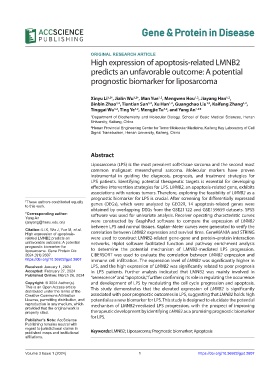 Received: January 1, 2024 LPS, and the high expression of LMNB2 was significantly related to poor prognosis