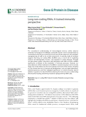 perspective. Gene Protein Dis. Keywords: Long non-coding RNA; Trained immunity; Metabolic reprogramming;