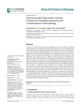 doi: 10.36922/gpd.3230 risks will optimize these innovations and offer safe, effective exosome treatments