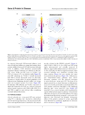 proteins (CRP, albumin) and GFAP. (B and D) IL-6, VCAM-1, and TNF-α. These scatter plots showcase six of the seven most significant markers (CRP,